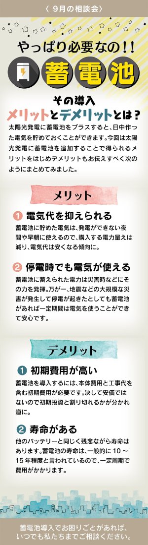 太陽光発電に蓄電池を追加することで、日中の発電電力を蓄えて夜間に活用可能に。今回はそのメリット・デメリットを分かりやすく解説します。